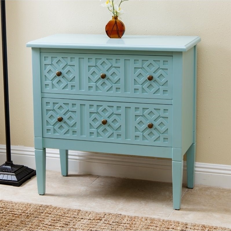 | Abbyson Living - Accent Tables - MD145040LBLU - Drawers: Two (2) Blue Wood Blue Dimensions are 31 inches wide x 15 inches deep x 31.5 inches high. Specifications:Assembled Dimensions: 31.4 H x 31.1 W x 15 DAssembled Weight: 12 lbs# of Cartons: 1Box Dimensions: 24.41 H x 17.72 W x 33.86 DCubic Feet: 8.1Loadability 20' Container: 135.8Loadability 40' HC Container: 290.12
