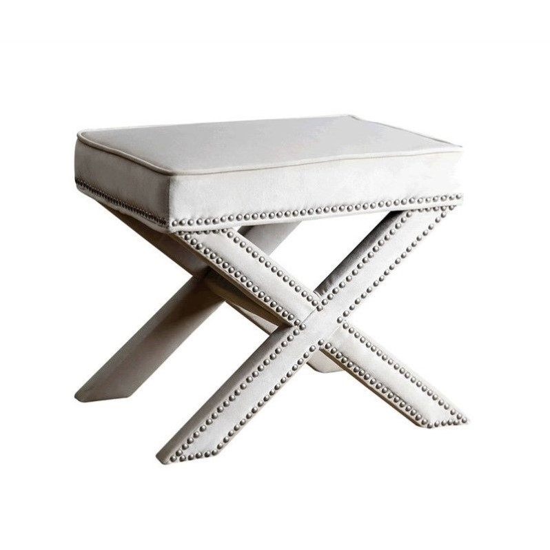 | Abbyson Living Arc Microsuede Nailhead Trim Ottoman in Cream |