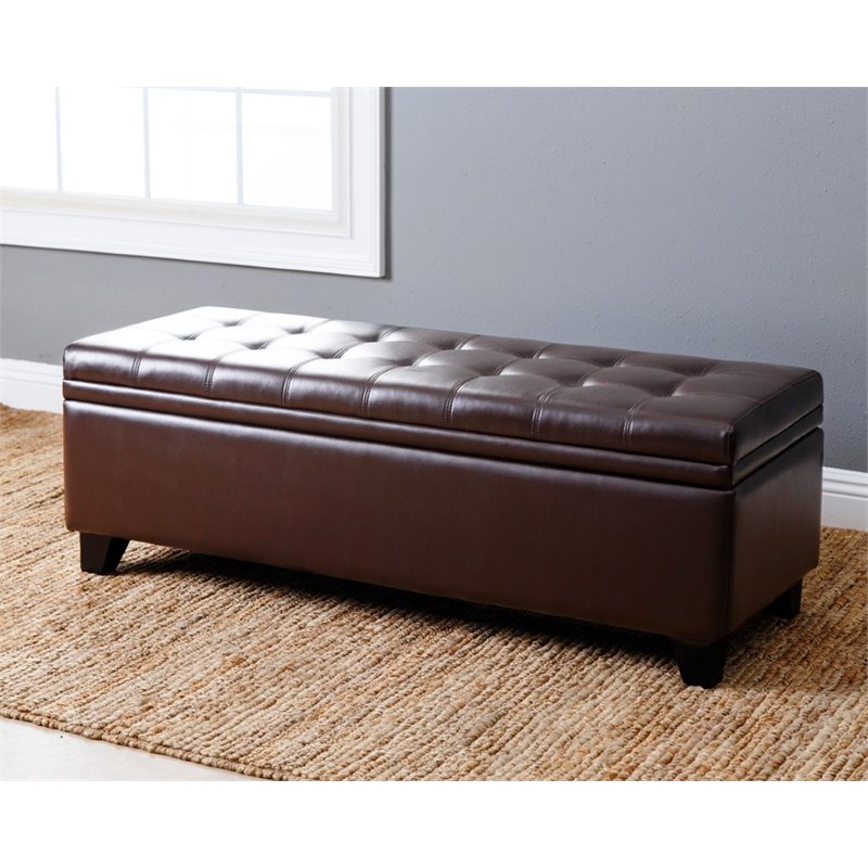 | Abbyson Living - Ottomans - HSOTHS367BRN - Add modern style to your living space while adding functional style at the same time with this leather tufted ottoman. Finish: BrownMaterial: Bonded LeatherTufted Top Storage funtion featues safety hinges for easy openingSpecifications:Overall Product Dimensions: 17.5 H x 49.5 W x 19 DOverall Product Weight: 38.6 lbs