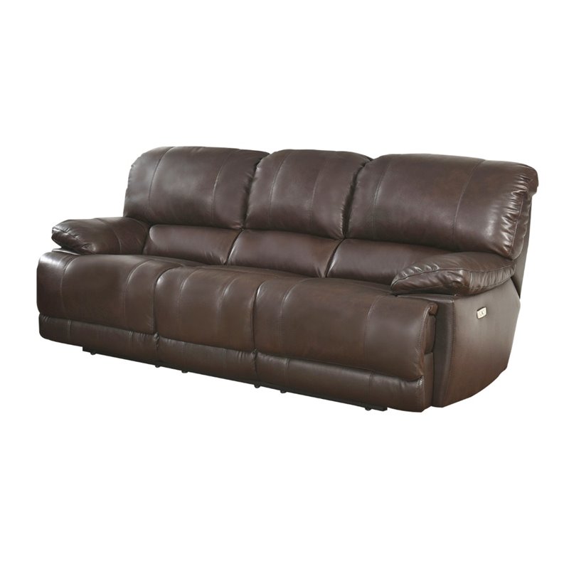 | Abbyson Living - Sofas - SK19473 - Add style and luxury to your living room with this reclining sofa. Upholstered in a luxurious dark brown top grain leather, this reclining sofa has all of the features one would want when sitting on their new couch, such as, comfortable 2.2 high density foam cushioning and an added bonus of a USB outlet. The wide, plush armrests offer added comfort when relaxing. Finish: Dark BrownMaterial: Top Grain Leather2.2 High Density foam seat cushions, wrapped in soft Dacron for added comfort and supportActivators feature sleek metal frame, easy-to-use buttons, and added bonus of USB outletSeats and back cushions are attached to help keep their shape and lookBack cushions feature premium quality spun fibers and Dacron fillings which are baffled and baggedElastic webbing suspension system for even weight distribution in the frameKiln-dried wood and solid wood frame, corner braced and blocked in all key joint areas to help preserve structure.Wide, plush armrests offer comfort and relaxationTop Grain Leather on all seating areas and armrests, and leather match on sides and backsSpecifications:Overall Product Dimensions: 40� H x 88� W x 41� DProduct Weight: 200 lbs