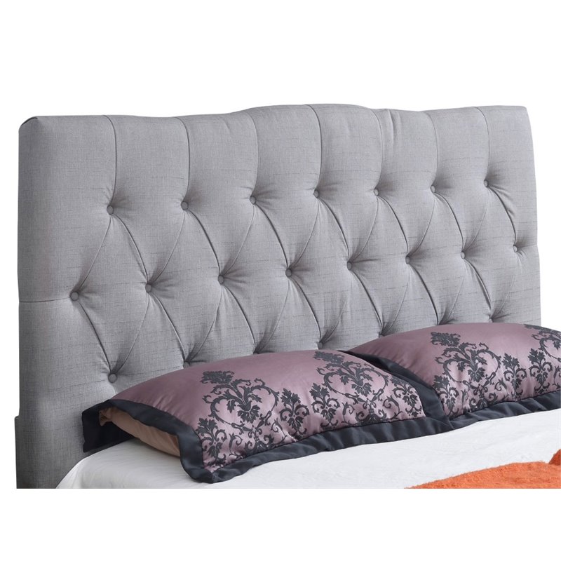 | Abbyson Living - Headboards - KM0625GRYKG - Finish: Gray Materials: Poplar Wood, LinenTufted headboardSimilar size bed frame can be attached to the headboard.Extra 5 is 2.5 on either side, helps keep the look of the headboardSpecifications:Overall Product Dimensions: 55.1 H x 81 W x 3.9 DProduct Weight: 49 lbsUpholstered part of the headboard starts at: 20 Overall height: 35 (Without legs)
