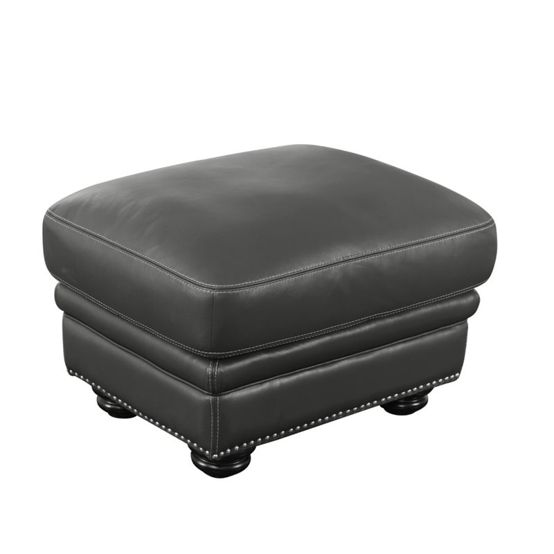 | Abbyson Living - Ottomans - SK2919GRY4 - Brown too basic? This rich Gray leather sofa is a modern twist on the traditional brown. The elegant rolled arms, contrasting white stitching and nailhead trim are subtle details that make a big impact. Finish: GrayMaterials: Solid HardwoodUpholstery Materials: Top Grain LeatherLeather match used on the sides and backUpholstery color: Gray with contrast white stitchingHigh resiliency 2.0-density foam cushioning for added comfort and supportCorner-blocked joineryHand-stitched detailsSpecifications:Overall Product Dimensions: 20 H x 29 W x 23 DSeat Height: 20 inchesProduct Weight: 25 lbs