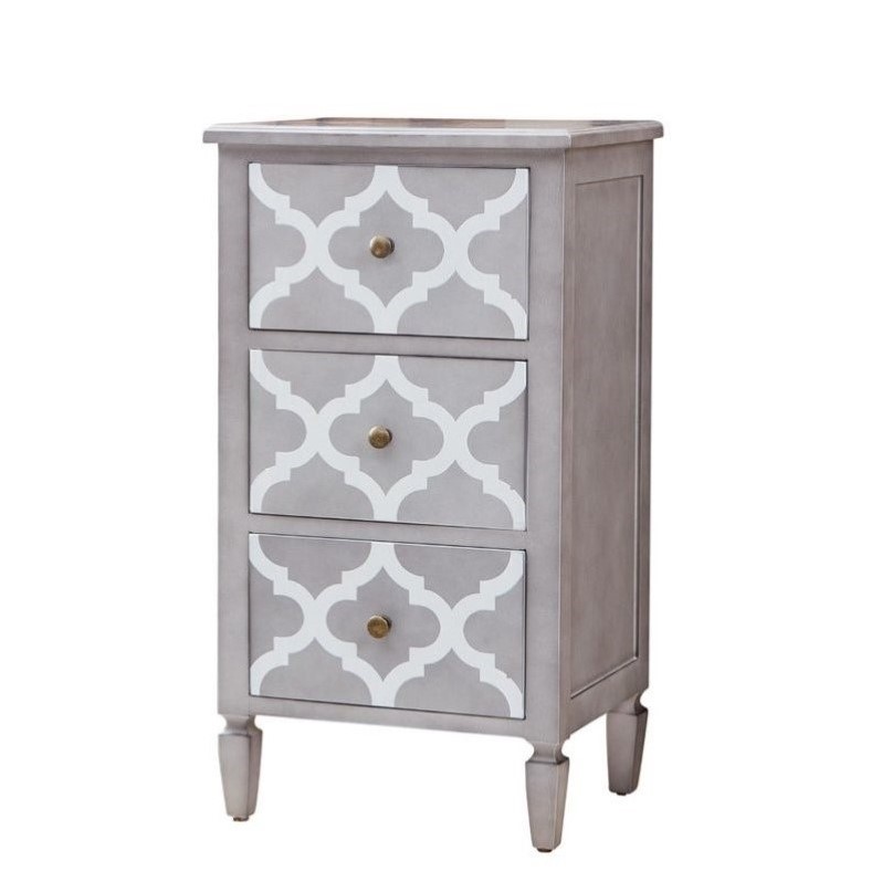| Abbyson Living - End Tables - MDP145167GRY - 3-drawer design Grey and White patternWoodGrey and White pattern31.5 inches high x 17 inches wide x 13.5 inches deep. Specifications:Assembled Dimensions: 31.5 H x 17.1 W x 13.4 DAssembled Weight: 9 lbs# of Cartons: 1Box Dimensions: 34.25 H x 16.14 W x 19.69 DCubic Feet: 6.4Loadability 20' Container: 171.88Loadability 40' HC Container: 367.19