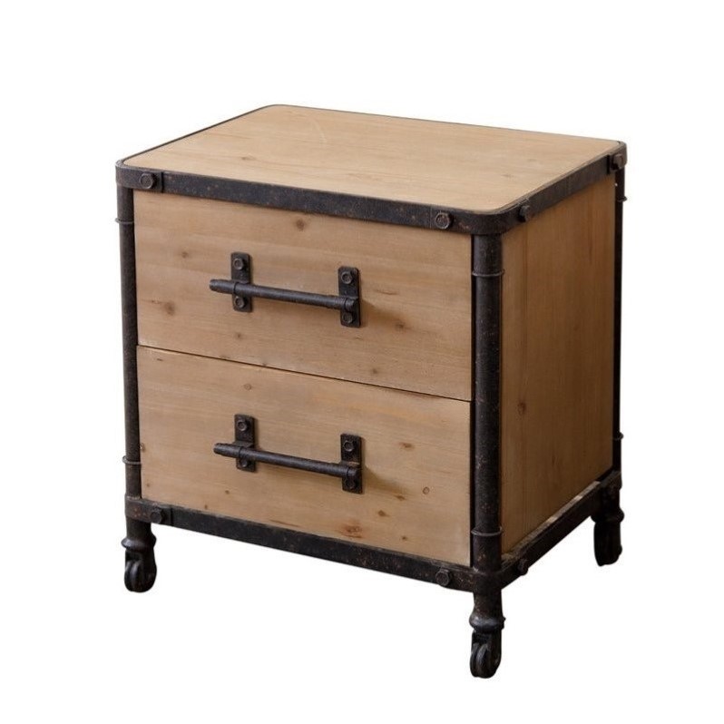 | Abbyson Living - Nightstands - MDM30022 - Drawers: (2) Two Beige, distressed blackWood, Iron Beige, distressed black22.5 inches high x 21 inches wide x 16 inches deep. Specifications:Assembled Dimensions: 22.5 H x 21 W x 15.7 DAssembled Weight: 9 lbs# of Cartons: 1Box Dimensions: 20.47 H x 18.11 W x 23.23 DCubic Feet: 6.7Loadability 20' Container: 164.18Loadability 40' HC Container: 350.75