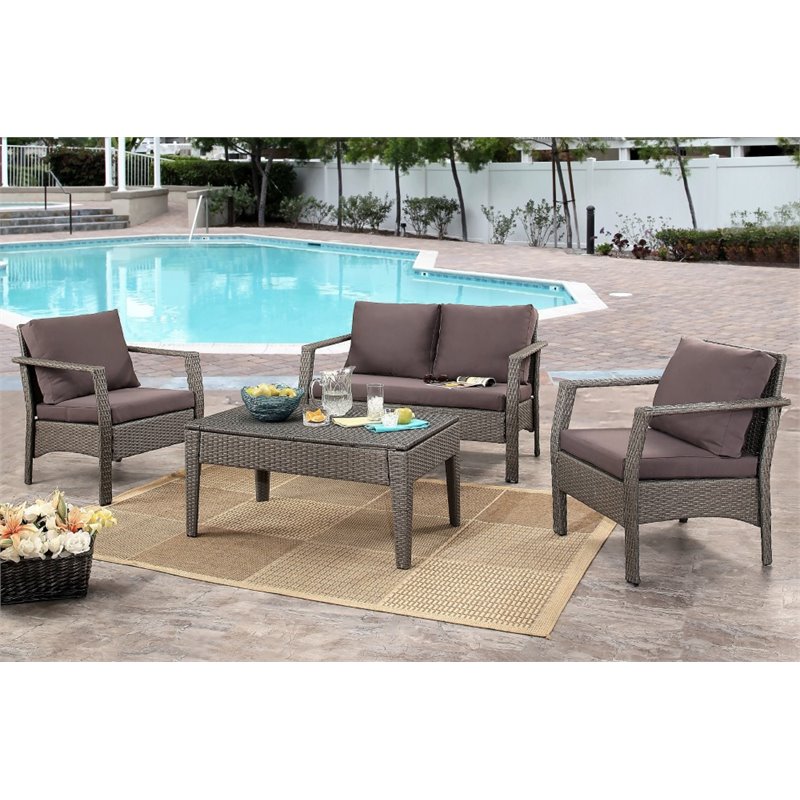 | Abbyson Living - Outdoor Sofa Sets - DLRS0334PCGRY - Entertain with distinction and charm with this lovely seating group in neutral tone that will match any decor. Featuring a modern design and sturdy frame, this set will impress your guests and garantee your outdoor relaxation for years to come! Finish: GrayMaterial: PE WickerFour piece set features a rustic themeSet includes: One (1) loveseat, two (2) armchairs, and one (1) coffee tableSpecifications:Overall Product Dimensions: 18 H x 40 W x 24 DOverall Product Weight: 46.2 lbs