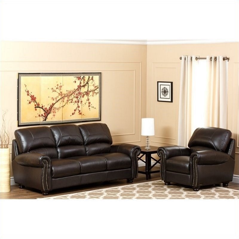 | Abbyson Living Berneen 2 Piece Leather Sofa Set in Dark Truffle |