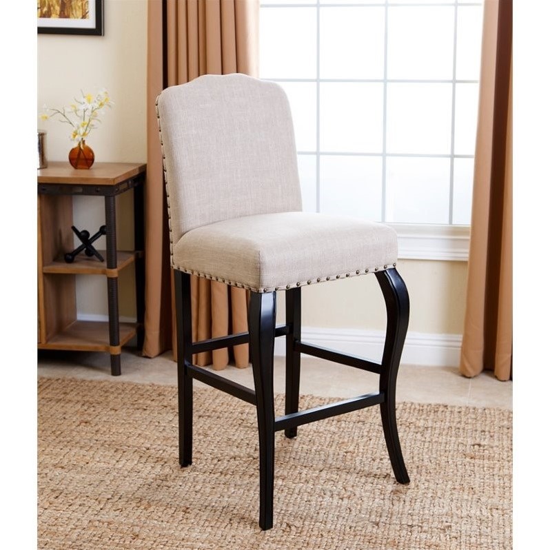 | Abbyson Living - Bar Stools - HSBS748IVY - Includes: One (1) stoolNailhead trimming accentsIvory Solid HardwoodLinen Espresso 20.5 inches wide x 23.25 inches deep x 46 inches highSeat Height: Bar Height. Specifications:Assembled Dimensions: 46.06 H x 20.47 W x 23.23 DAssembled Weight: 20 lbs# of Cartons: 1Box Dimensions: 48.03 H x 25.59 W x 22.83 DCubic Feet: 13.77Loadability 20' Container: 79.87Loadability 40' HC Container: 192.41