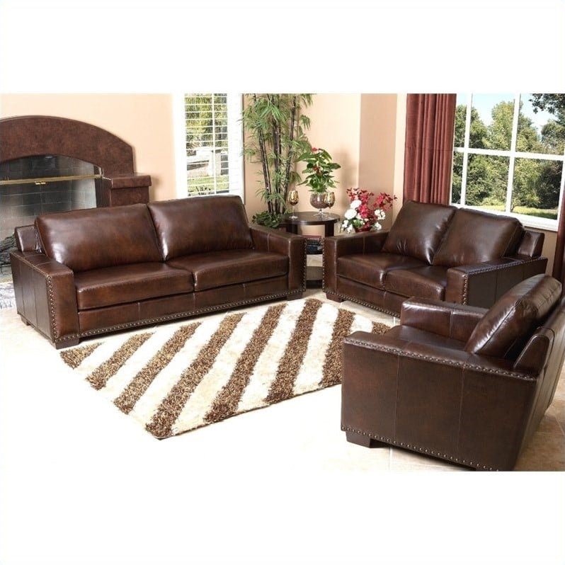 | Abbyson Living Beverly 3 Piece Leather Sofa Set in Espresso |
