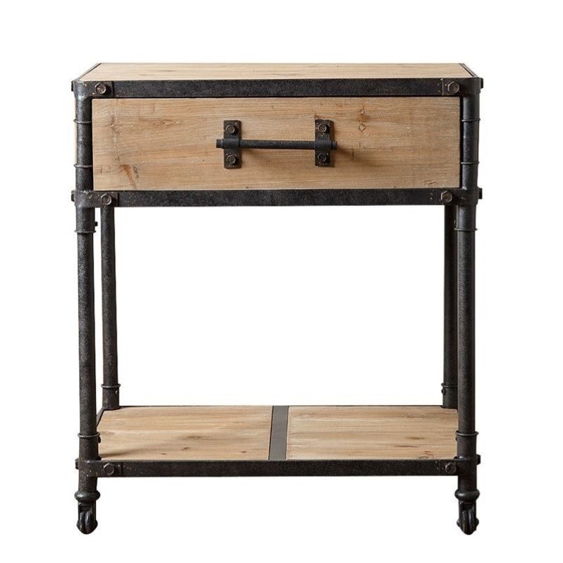 | Abbyson Living - End Tables - MDM30171 - One drawerOn bottom shelf Natural, distressedIron and woodNatural, distressed29.5 inches high x 26.2 inches wide x 16.5 inches deep. Specifications:Assembled Dimensions: 29.5 H x 26 W x 16.5 DAssembled Weight: 24 lbs# of Cartons: 1Box Dimensions: 19 H x 18 W x 29 DCubic Feet: 5.7Loadability 20' Container: 192Loadability 40' HC Container: 412