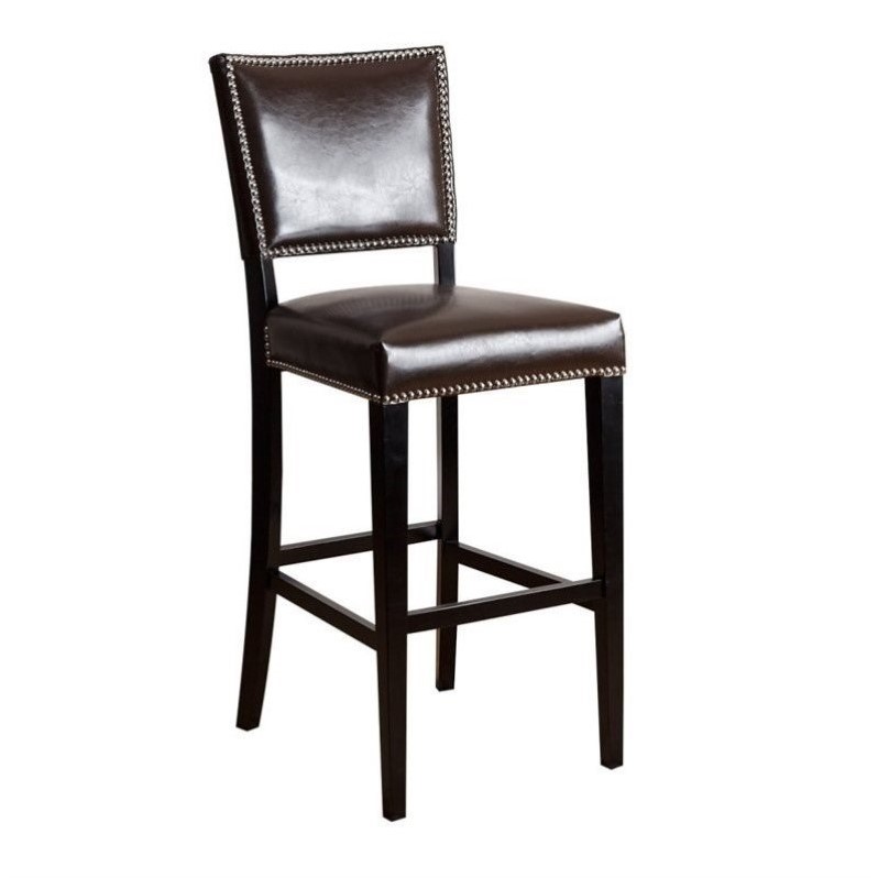 | Abbyson Living - Bar Stools - HSDC077BRN - Includes: One (1) stoolFoam cushioningNail-head trimmingBrown Bonded LeatherHardwood Espresso 18 inches wide x 23 inches deep x 45 inches highSeat height: 30 inches. Specifications:Assembled Dimensions: 44.88 H x 17.72 W x 22.83 DAssembled Weight: 17 lbs# of Cartons: 1Box Dimensions: 45.87 H x 18.7 W x 24.21 DCubic Feet: 12Loadability 20' Container: 91.67Loadability 40' HC Container: 220.83