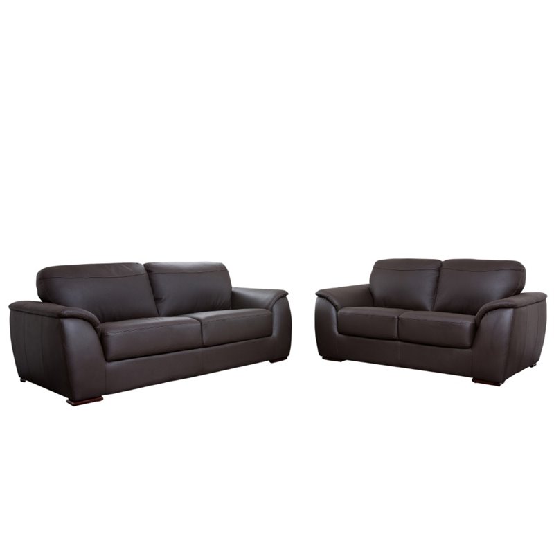 | Abbyson Living - Sofa Sets - FR955008100820 - Add sleek style to your home decor with a dark brown leather sofa set. Finish: BrownMaterial: WoodSoft and plush cushioningIncludes: One (1) Sofa and One (1) LoveseatSpecifications:Sofa Dimensions: 34 H x 82 W x 37 DLoveseat Dimensions: 34 H x 68 W x 37 DSofa Weight: 121 lbsLoveseat: 104 lbs