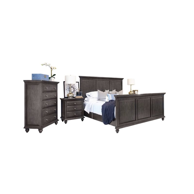 | Abbyson Living - Bedroom Sets - RK60204PCCK - Furnish your bedroom in style with this beautiful bedroom set. Featuring sleek chrome handles and a rich Gray finish, this set combines classic details with a rustic feel for a beautiful addition to both traditional and contemporary decor. The nightstands and chest provide plenty of storage space, while the bed offers sturdy support.Finish: Gray; Materials: Solid Rubberwood construction; Chrome handles and knobs; Set includes 1 bed, 2 nightstands, and 1 chest . Specifications:California King Bed Dimensions: 60 H x 79 W x 94 D; Chest: 50 H x 36 W x 19 D; Nightstand: 30 H x 28 W x 19 D; Product Weight: 115 lbs.