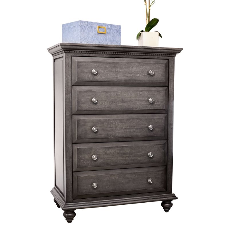 | Abbyson Living - Chests - RK60202530 - Furnish your bedroom in style with this beautiful five drawer chest. Featuring a rich Gray finish, this set combines classic details with a rustic feel for a beautiful addition to both traditional and contemporary decor. Finish: GrayMaterials: Solid Rubberwood ConstructionFull-extension ball-bearing drawer slidesChrome handles and knobsSpecifications:Overall Product Dimensions: 50 H x 36 W x 19 DProduct Weight: 115 lbs
