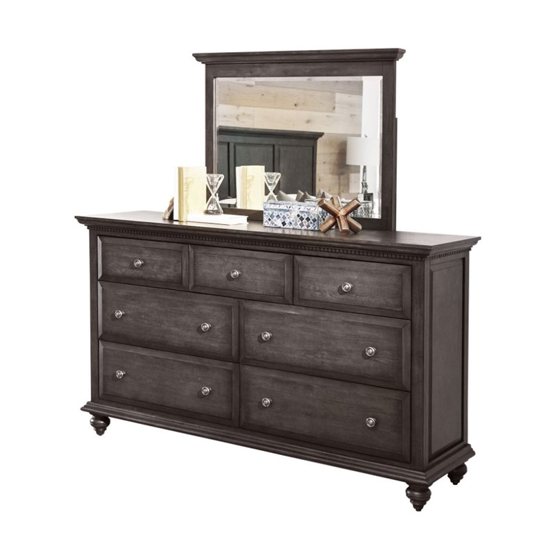 | Abbyson Living - Dressers - RK6020254010 - Furnish your bedroom in style with this beautiful dresser and mirror set. Featuring a rich Gray finish, this set combines classic details with a rustic feel for a beautiful addition to both traditional and contemporary decor.Finish: Gray; Materials: Solid Rubberwood Construction; Full-extension ball-bearing drawer slides; Chrome handles and knobs. Specifications:Overall Product Dimensions: 40 H x 66 W x 19 D; Product Weight: 214 lbs.