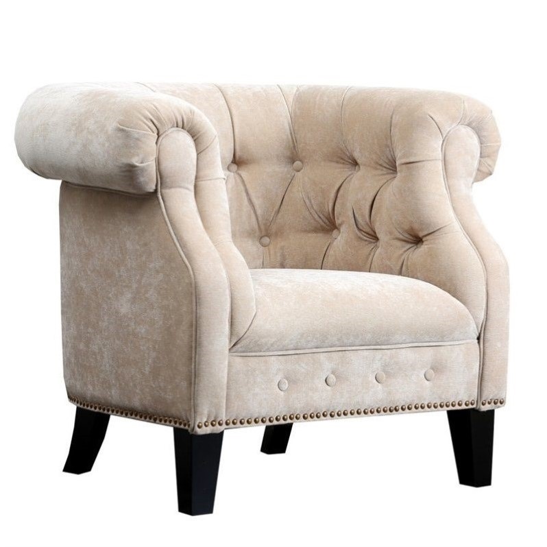 | Abbyson Living - Accent Chairs - HSSF350CRM - The exquisite Camber collection by Abbyson Living bathes your living space in royal elegance. Rich colors, fabrics, and an uncompromising style characterizes this collection. Traditional details such as tufted cushioning ensures the timelessness of this piece, and as usual, its comfort will never fail you. Hardwood frame/wood legs/linen upholstery; Minor assembly required; Designed in USA . Specifications: Armchair: 30H x 36W x 31D .