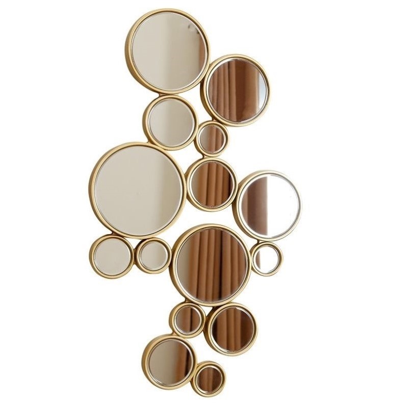 | Abbyson Living - Accent Mirrors - TMGD9259MIR - Wood frame contains multiple circular glass mirrorsEasy-to-clean frame requires just a dry, soft, cloth, and glass cleaner is safe for use on the glassGold/SilverGlass/WoodGold/Silver24.5 inches wide x 1.2 inches deep x 42 inches high. Specifications:Assembled Dimensions: 1.18 H x 41.93 W x 24.41 DAssembled Weight: 31 lbs# of Cartons: 1Box Dimensions: 29.92 H x 4.72 W x 47.05 DCubic Feet: 3.67Loadability 20' Container: 299.51Loadability 40' HC Container: 721.54
