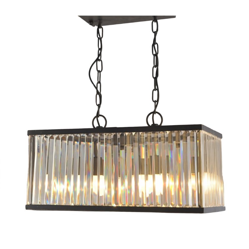 | Abbyson Living - Chandeliers - SHMD21446ABG - Crystal cylinders create a magical prismatic effect in this modern rectangular chandelier. Iron frame is suspended with adjustable chains and holds six 60 watt bulbs. Bulbs not included. Finish: BlackMaterial: Iron Frame, CrystalSetting: IndoorFixture Finish: BlackSpecifications:Overall Product Dimensions: 29 H x 19 W x 19 DProduct Weight: 34 lbs