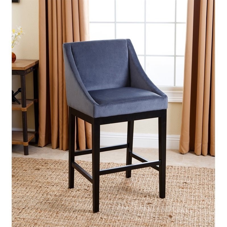 | Abbyson Living - Bar Stools - HSBS742BLU - Blue HardwoodVelvet Fabric Dark Brown 21 1/2 inches wide x 20 1/2 inches deep x 41 1/4 inches high. Specifications:Assembled Dimensions: 41.34 H x 21.65 W x 20.47 DAssembled Weight: 24 lbs# of Cartons: 1Box Dimensions: 42.91 H x 22.83 W x 24.02 DCubic Feet: 12.36Loadability 20' Container: 89Loadability 40' HC Container: 214.4