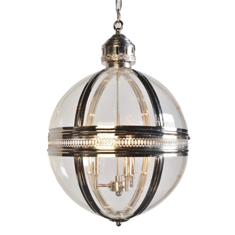 | Abbyson Living - Chandeliers - SHTD700123NI - Polished chrome encircles a glass globe in this retro styled chandelier. Hinged opening allows for easy access to the three 60 watt bulbs and chrome chain makes it easy to achieve the perfect length. Bulbs not included. Finish: SilverMaterial: Iron Frame, GlassSetting: IndoorFixture Finish: Polished ChromeNumber of lights: Specifications:Overall Product Dimensions: 20 H x 6 W x 6 DProduct Weight: 20 lbs