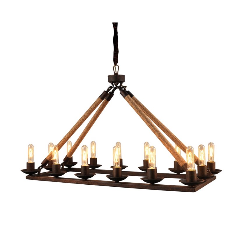 | Abbyson Living - Chandeliers - SHMD206214LRR - Fit for a medieval castle, this forged iron chandelier features rope accents and a rustic finish. Heavy duty chain suspends over your favorite dining table to illuminate your next feast. Uses fourteen 60 watt bulbs, not included. Finish: BrownMaterial: Iron Frame Banded by Jute RopeSetting: IndoorFixture finish: RusticNumber of lights: Fourteen (14)Requires Fourteen (14) 60-watt, E12 socket, type B bulbs (not included).Specifications:Overall Product Dimensions: 15 H x 7 W x 7 DProduct Weight: 18 lbs