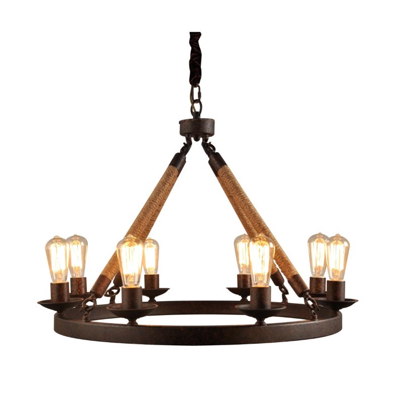 | Abbyson Living - Chandeliers - SHMD20628LRR - Fit for a medieval castle, this forged iron chandelier features rope accents and a rustic finish. Heavy duty chain suspends over your favorite dining table to illuminate your next feast. Uses eight 60 watt bulbs, not included. Finish: BrownMaterial: Iron Frame Banded by Jute RopeSetting: IndoorFixture finish: RusticNumber of lights: Eight (8)Requires Eight (8) 60-watt, E12 socket, type B bulbs (not included).Specifications:Overall Product Dimensions: 25 H x 19 W x 19 DProduct Weight: 17 lbs