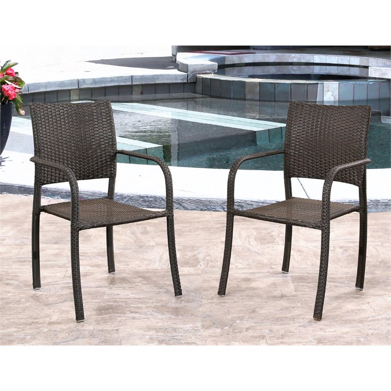 | Abbyson Living - Patio Dining Chairs - DLRC033ES2PCK - This set of wicker chair is the perfect way to give an extra edge to your existing outdoor decor. Made from PE wicker and featuring a powder-coated iron frame, this set of stackable chairs provides excellent quality and long lasting performance. The neut Finish: EspressoMaterial: PE WickerRich espresso finishSolid patterned chairsSpecifications:Overall Product Dimensions: 35 H x 22 W x 24 DOverall Product Weight: 20.68 lbs