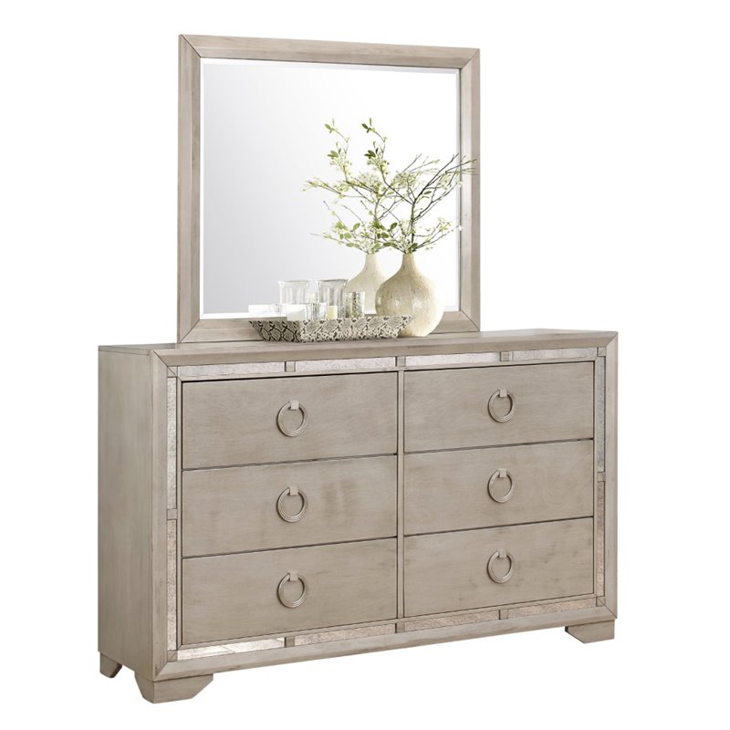 | Abbyson Living Grayson Mirrored 6 Drawer Dresser with Mirror in Gray |