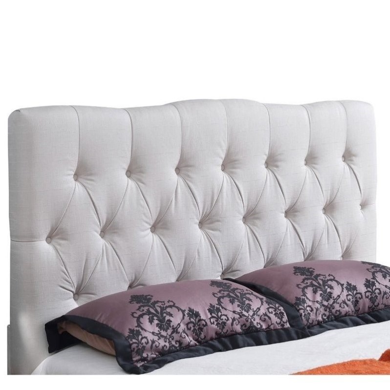 | Abbyson Living - Headboards - KM0625IVYFU - Tufted headboardSimilar size bed frame can be attached to the headboard.Ivory Poplar Wood, Linen Ivory Overall: 55 H x 59 W x 4 D Upholstered part of the headboard starts at: 20Overall height: 35(Without legs). Specifications:Assembled Dimensions: 55.12 H x 58.66 W x 3.94 DAssembled Weight: 29 lbs# of Cartons: 1Box Dimensions: 6.1 H x 41.14 W x 62.6 DCubic Feet: 9.71Loadability 20' Container: 113.28Loadability 40' HC Container: 272.91