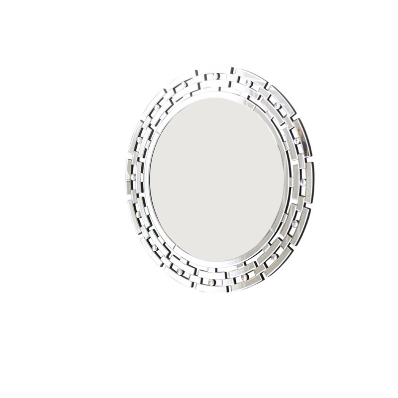 | Abbyson Living - Accent Mirrors - TMGD8841 - This elegant wall mirror provides a glamorous focal piece over your mantle or in the foyer. Circular mirror issurrounded with a dashed frame adorned with crystal gems. Hanging hooks allow for easy installation. Finish: SilverMaterials: Silver-Framed Glass Mirror with HardwareContemporary design matches Zayneern decor and stands out among traditional settingsIncludes one framed glass mirror with hardware and two rectangular hooks for easy installationMirrored surfaces can be cleaned with glass cleaner, other surfaces wipe down with a dry cloth.Specifications:Overall Product Dimensions: 39 H x 39 W x 1 DProduct Weight: 30 lbs