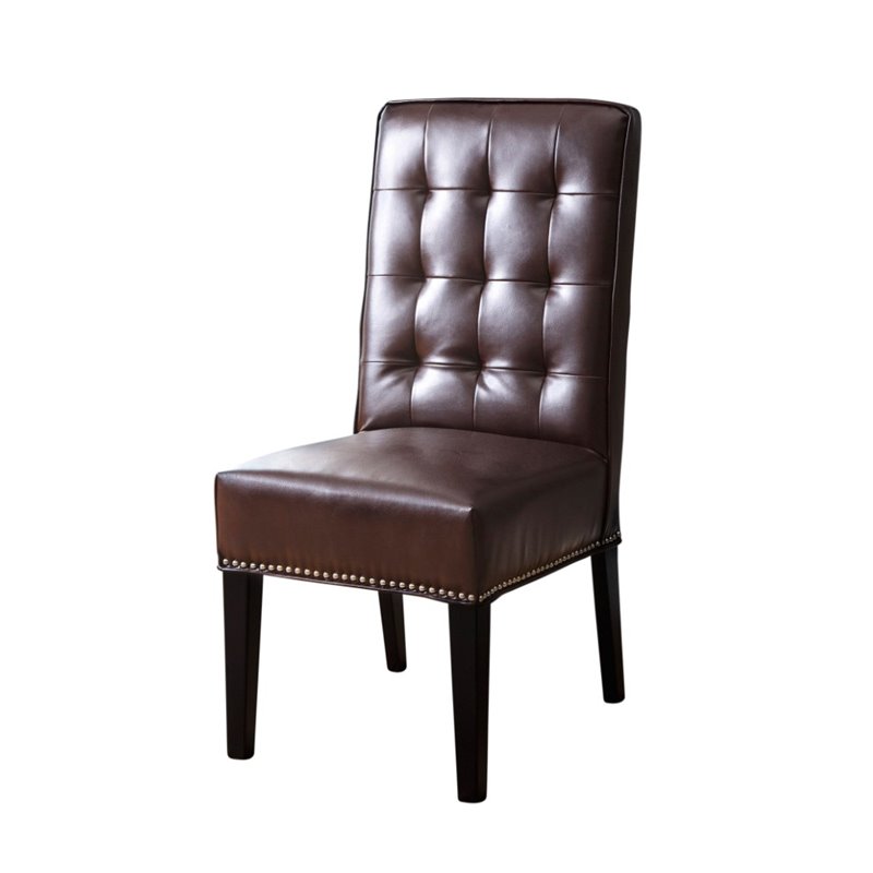 | Abbyson Living - Dining Chairs - HSDC004BRN - Add sophisticated style to your dining area with this leather 635. The detailed nailhead trim showcase all the attention to detail that went into this design. Finish: BrownMaterial: Bonded Leather, WoodBirch wood legs with espresso finishDecorative tufted backSpecifications:Overall Product Dimensions: 41 H x 19 W x 25 DOverall Product Weight: 19.8 lbs