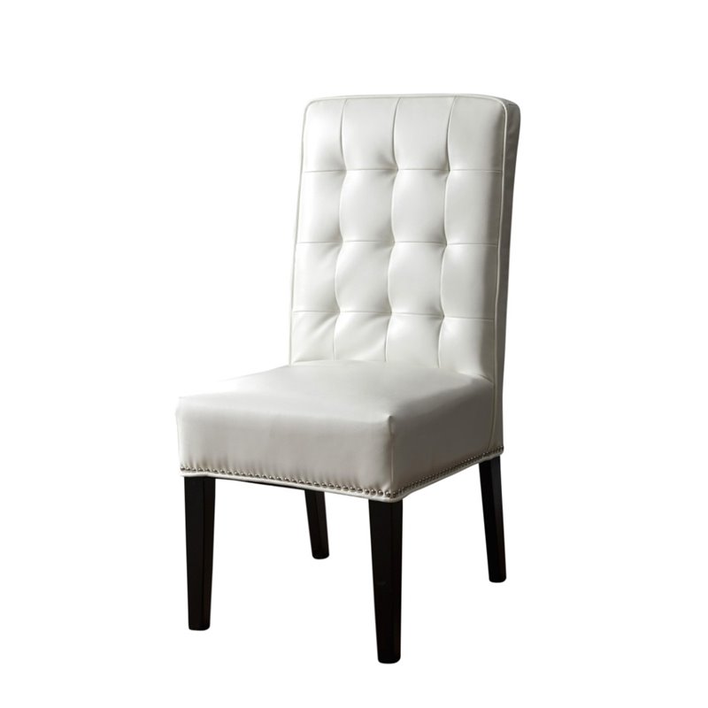| Abbyson Living - Dining Chairs - HSDC004WHT - Add sophisticated style to your dining area with this leather 635. The detailed nailhead trim showcase all the attention to detail that went into this design. Finish: WhiteMaterial: Bonded Leather, WoodBirch wood legs with espresso finishDecorative tufted backSpecifications:Overall Product Dimensions: 41 H x 19 W x 25 DOverall Product Weight: 19.8 lbs