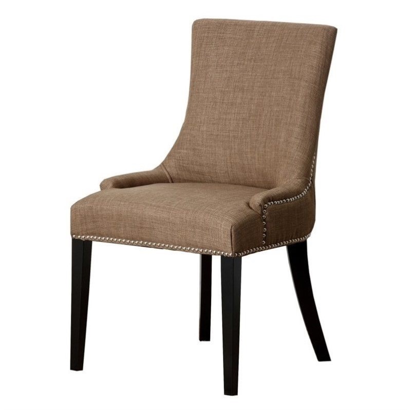 | Abbyson Living - Dining Chairs - HSDC217GLD - Set includes: One (1) chairCurved armsSilver nailhead trimmingsGold LinenHardwood Espresso Chair dimensions: 36 inches high x 22 inches wide x 24 inches deepSeat dimensions: 19 inches high x 22 inches wide x 22 inches deep. Specifications:Assembled Dimensions: 36.22 H x 21.65 W x 24.41 DAssembled Weight: 18 lbs# of Cartons: 1Box Dimensions: 38.58 H x 25.98 W x 24.41 DCubic Feet: 11.6Loadability 20' Container: 94.83Loadability 40' HC Container: 228.45