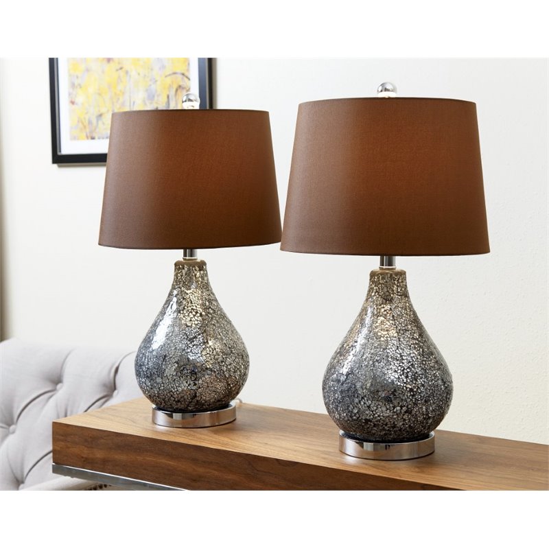 | Abbyson Living - Table Lamps - SP30832PCK - Make a statement in your home with these shattered glass table lamps. The elegant look will add warmth to your bedroom or living space. Finish: SilverMaterial: GlassShade: BrownSocket switchSpecifications:Overall Product Dimensions: 26 H x 13 W x 13 DOverall Product Weight: 10.12 lbs