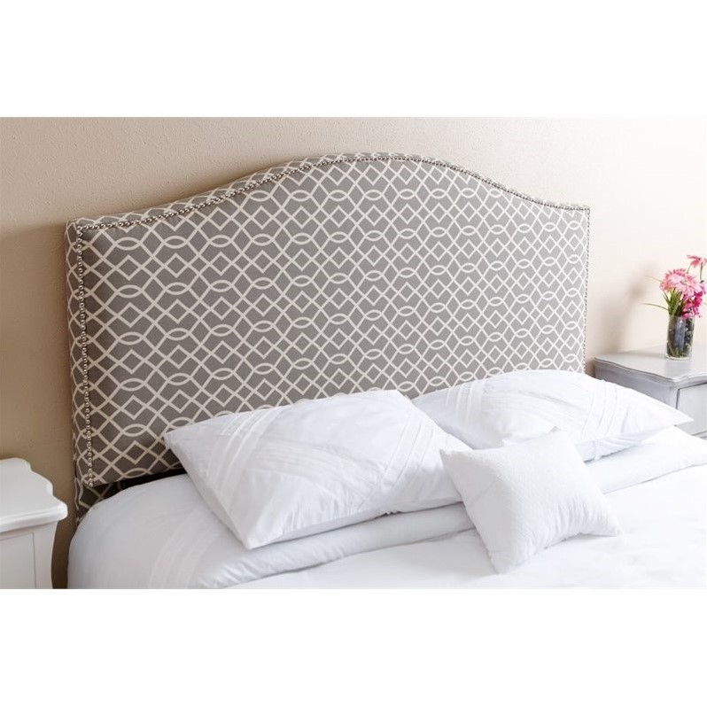 | Abbyson Living - Headboards - BRHBL002GRPFQ - Luxuriously padded upholstered headboard with exquisite detailingAccented with distinctive silver nailhead trimGrey PatternWood, Bonded LeatherGrey Pattern 51.5 inches high x 63.2 inches wide x 5 inches deep. Specifications:Assembled Dimensions: 51.57 H x 63.19 W x 4.92 DAssembled Weight: 34 lbs# of Cartons: 1Box Dimensions: 31.3 H x 5.31 W x 64.37 DCubic Feet: 6.15Loadability 20' Container: 178.86Loadability 40' HC Container: 430.89