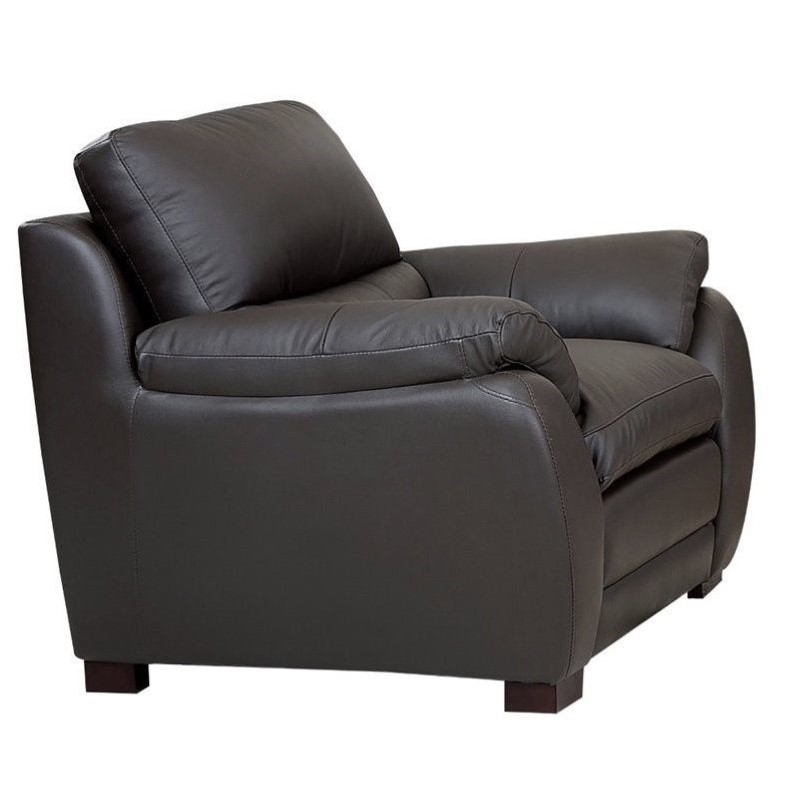 | Abbyson Living - Accent Chairs - CI1200BRN1 - Experience luxury and comfort with this deep and comfy leather piece. The inviting seat cushions are fully padded with high resiliency foam that is wrapped in a Dacron fill for years of superior comfort. Soft and supple leather upholstery drapes the body of the frame, giving it a satisfying look and feel. Its durable kiln-dried hardwood frame is handled with a great deal of care and is put together by a unique and highly skilled craftsman to ensure longevity and strength as well as long-term comfort and satisfaction. Materials: Kiln-Dried Hardwood frameUpholstery Materials: Premium Top-grain leather on all seating areas and armrests and leather splits on front rails, sides and backUpholstery Color: Dark BrownUpholstery fill: High resiliency 2.0-Density foam cushioning that is wrapped in a Dacron fill for added comfort and support.The frames are foam-encased, corner braced and blocked to help preserve structureFeatures multi-channeled high back for added supportFully padded arms and backrestsHand-stitched detailsHardwood legs coated in dark finishArmchair: 40 inches wide x 36 inches deep x 36 inches highArmchair seating: 19 inches wide x 21 inches deep x 16 inches highBackrests: 22 inches high. Specifications:Assembled Dimensions: 36 H x 41 W x 37 DAssembled Weight: 69 lbs# of Cartons: 1Box Dimensions: 28 H x 37.4 W x 42.52 DCubic Feet: 25.8Loadability 20' Container: 42.64Loadability 40' HC Container: 102.71
