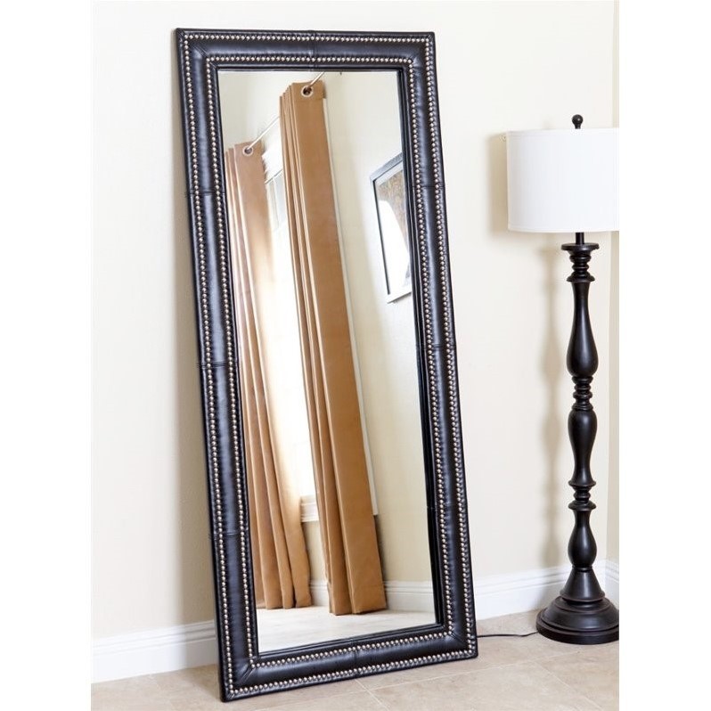 | Abbyson Living Marant Leather Floor Mirror in Black |