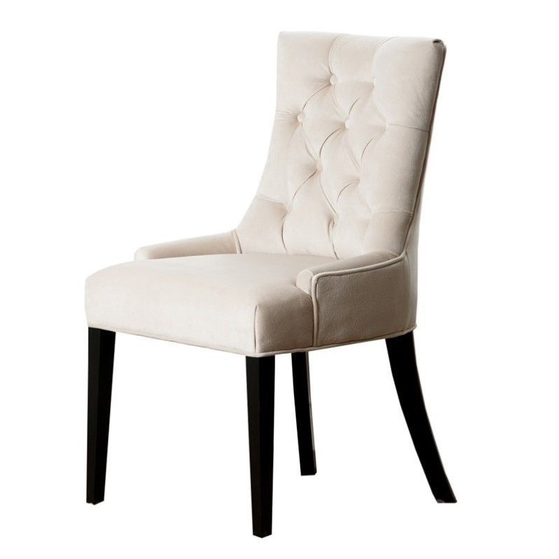| Abbyson Living - Dining Chairs - HSDC013CRM - Dining chair tufted back frame for elegant designCream MicrosuedeWood Espresso Chair dimensions: 36.5 inches high x 22.5 inches wide x 24.5 inches deepSeat dimensions: 19.5 inches high x 22 inches wide x 22 inches deep. Specifications:Assembled Dimensions: 36.61 H x 22.05 W x 23.62 DAssembled Weight: 18 lbs# of Cartons: 1Box Dimensions: 23.62 H x 23.03 W x 25.2 DCubic Feet: 7.8Loadability 20' Container: 141.03Loadability 40' HC Container: 339.74