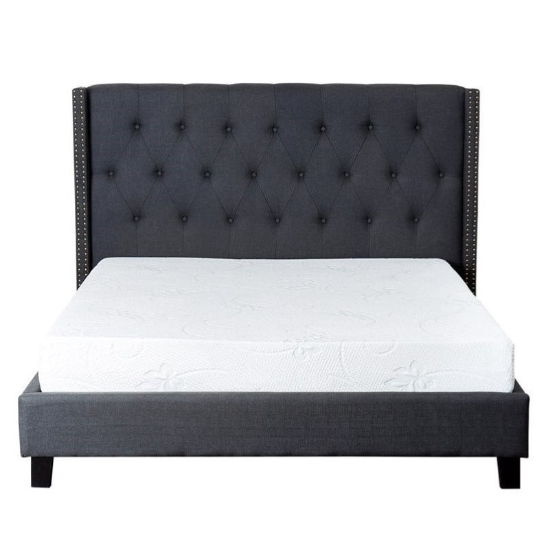| Abbyson Living - Beds - KM14BA063CRQU - Set includes: One (1) headboard, one (1) footboard, one (1) set of rails, one (1) complete euro slatsWingback designNailhead trimCharcoal Poplar Wood, Linen Charcoal 49 inches high x 65 inches wide x 86 inches deepHeadboard height: 49 inchesFootboard height: 12 inches. Specifications:Assembled Dimensions: 49.02 H x 64.57 W x 85.83 DAssembled Weight: 110 lbs# of Cartons: 2Box 1 Dimensions: 9 H x 48 W x 72 DBox 1 Weight: 75 lbsLoadability 20' Container: 62.01Loadability 40' HC Container: 132.47Box 2 Dimensions: 7 H x 11 W x 80 DBox 2 Weight: 65 lbsLoadability 20' Container: 273.63Loadability 40' HC Container: 584.58