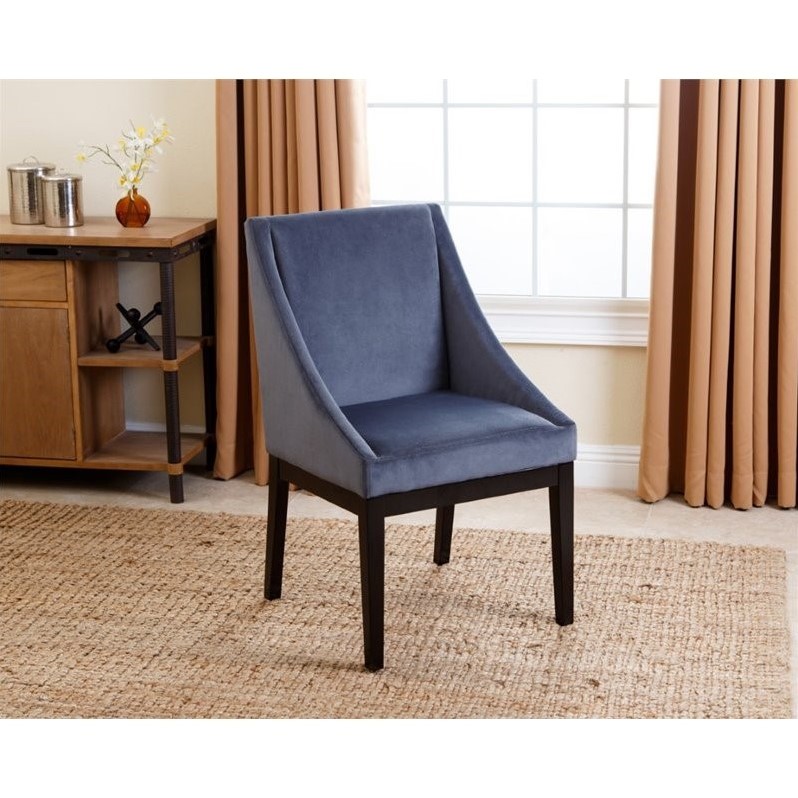 | Abbyson Living - Dining Chairs - HSDC743BLU - Includes: One (1) chairBlue Solid Hardwood,VelvetEspresso 21.25 inches wide x 22.75 inches deep x 35.8 inches high. Specifications:Assembled Dimensions: 35.83 H x 21.26 W x 22.83 DAssembled Weight: 25 lbs# of Cartons: 1Box Dimensions: 37.8 H x 25.2 W x 23.62 DCubic Feet: 10.95Loadability 20' Container: 100.48Loadability 40' HC Container: 242.06