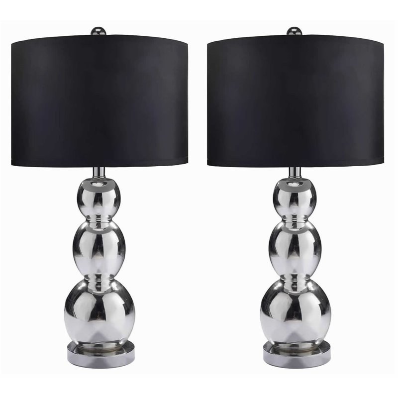 | Abbyson Living - Table Lamps - SP329842PCK - Finish: Silver Materials: Mercury GlassSet includes two table lampsBlack faux silk shades add a dramatic contrastSocket switch for easy useEach one light lamp requires one 100W light bulb (not included)Specifications:Overall Product Dimensions: 27 H x 15 W x 15 DProduct Weight: 8 lbs