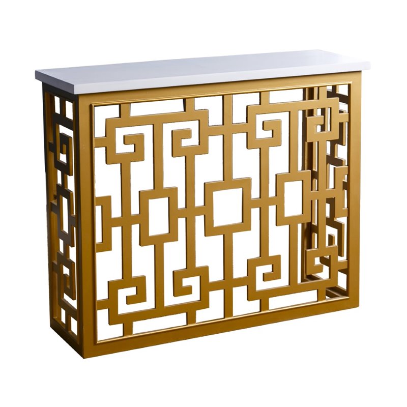| Abbyson Living - Console Tables - MDM150156SOF - Make a bold statement with this gold geometric sofa table. This will make the perfect additon to vintage styled homes. Add both style and comfort to your living space with this attractive collection. The subtle coloration of this lovely collection allows it to blend in easily with any color scheme or style of decor Finish: Gold; Material: Wood; White Top. Specifications:Overall Product Dimensions: 30 H x 36 W x 12 D; Overall Product Weight: 17.6 lbs.