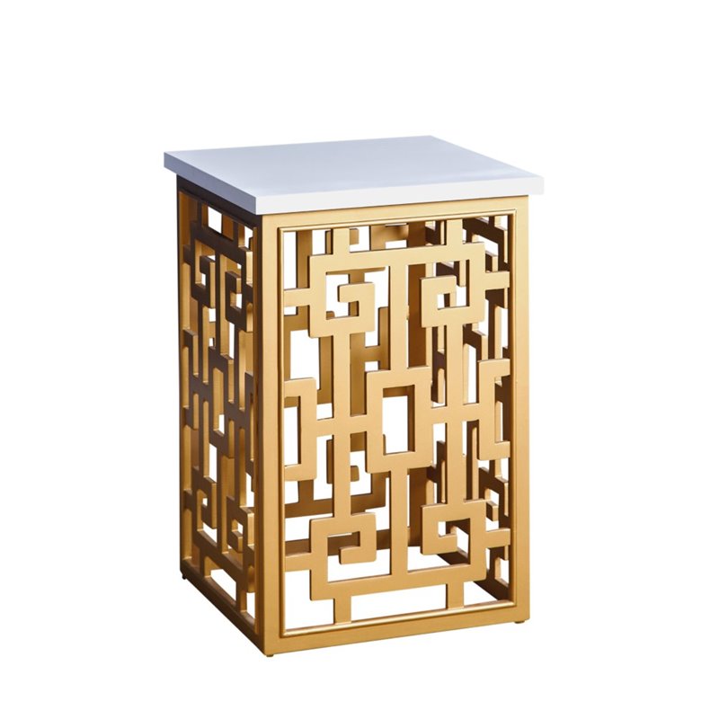 | Abbyson Living - End Tables - MDM150161END - Make a bold statement with this gold geometric end table. This will make the perfect additon to vintage styled homes. Finish: GoldMaterial: WoodWhite TopSpecifications:Overall Product Dimensions: 24.5 H x 16 W x 16 DOverall Product Weight: 11 lbs