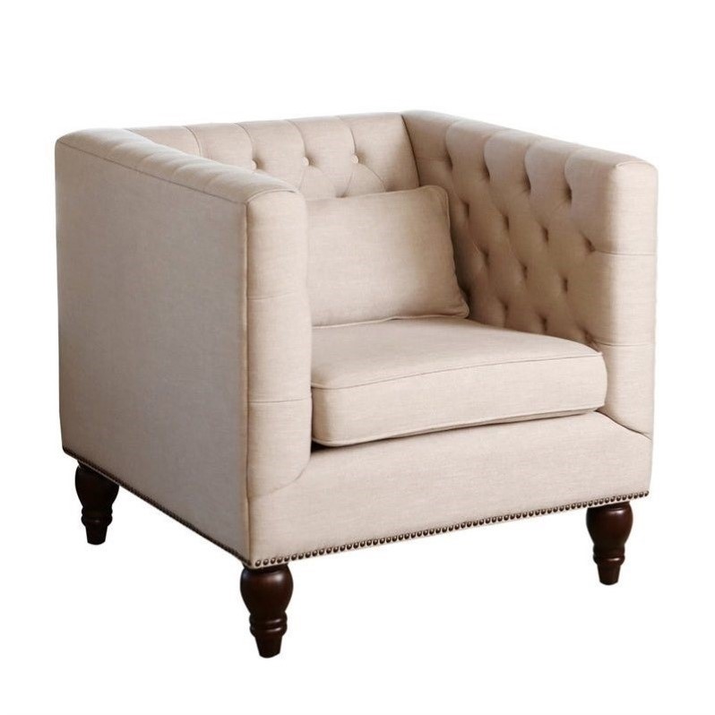 | Abbyson Living Montclair Linen Tufted Accent Chair in Beige |