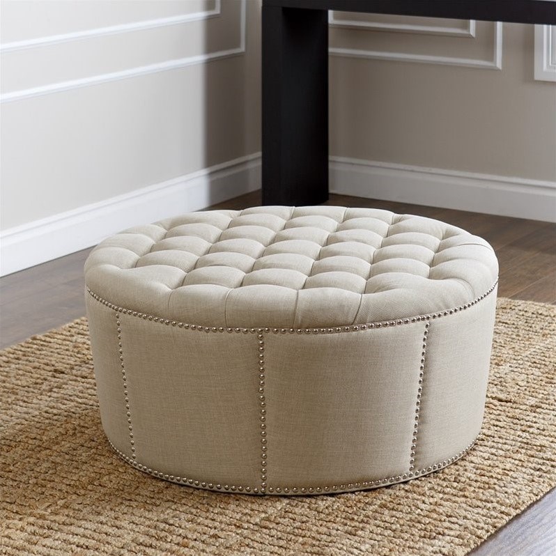 | Abbyson Living Naples Nailhead Linen Ottoman in Ivory |