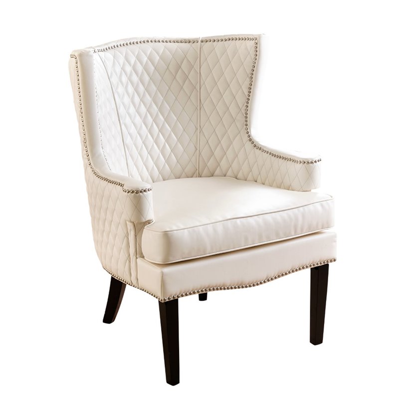 | Abbyson Living - Accent Chairs - BR39357WHT - Add this glamorous leather chair to your sitting room or bedroom. The vibrant white leather offers a clean look that will go with most décor styles. Finish: WhiteMaterial: Bonded LeatherChair Back Height: High BackSilver nailhead trimSpecifications:Overall Product Dimensions: 38 H x 29.3 W x 29 DOverall Product Weight: 35.27 lbs