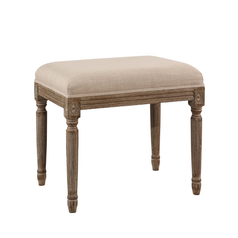 | Abbyson Living - Ottomans - HSOT106WHT - This ottoman will make a great piece for extra seating or for a foot rest. The weathered oak legs give this ottoman a rustic flair. Finish: WheatMaterials: Oak WoodUpholstery Materials: Penceester/linen blendSeat Construction: FoamSpecifications:Overall Product Dimensions: 19 H x 21 W x 15 DProduct Weight: 12 lbs