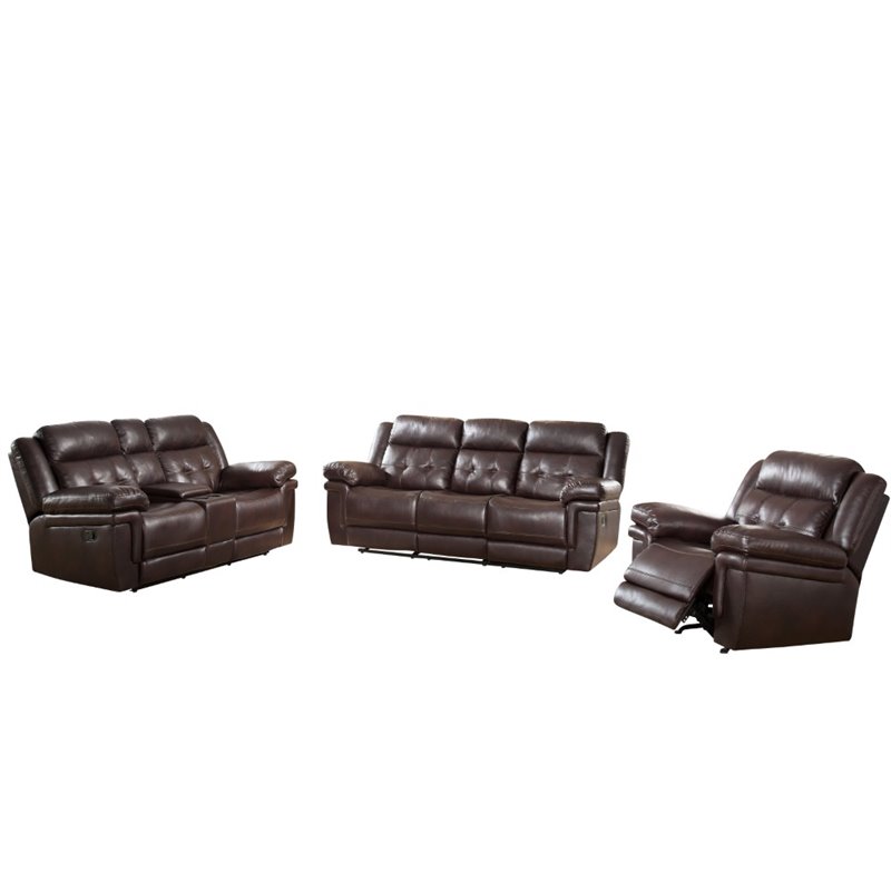 | Abbyson Living Paulo 3 Piece Reclining Set in Brown |