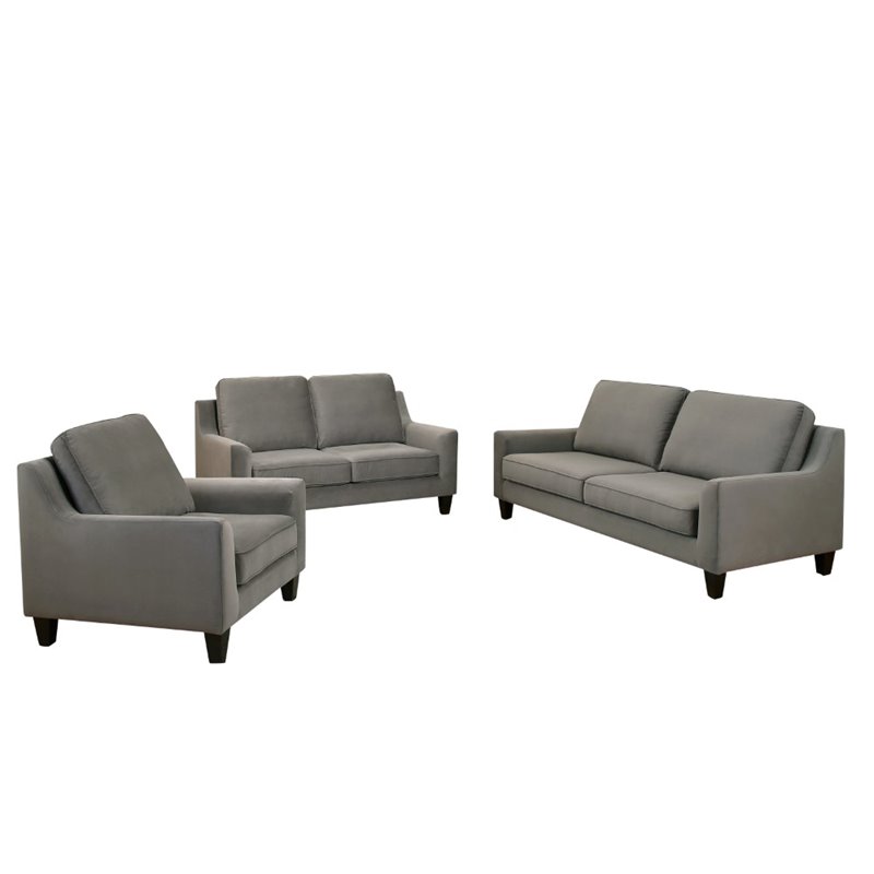 | Abbyson Living - Sofa Sets - KY255GRY321 - Outfit your modern style with the sleek lines of this seating set. Luxe sueded fabric in a cool Gray provides the perfect backdrop for neutral or bright accents. Generous seat sizes mean there is plenty of room for everyone. Finish: Gray; Materials: Solid Hardwood, 100% Penceester Fabric; Upholstery color: Gray; High resiliency 2.0-density foam cushioning for added comfort and support; Corner-blocked joinery; Hand-stitched details. Specifications:Sofa Dimensions: 36 H x 84 W x 38 D; Seat Depth: 22; Seat Height: 18; Seat Depth: 22; Seat Height: 18; Loveseat Dimensions: 36 H x 64 W x 38 D; Armchair Dimensions: 36 H x 38 W x 38 D ; Sofa Weight: 119 lbs.