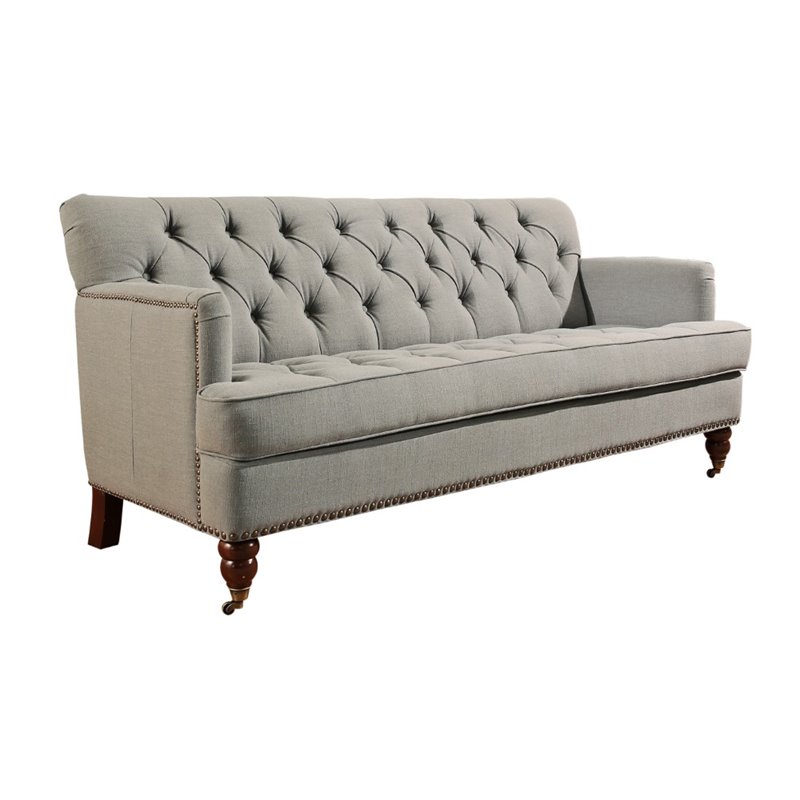 | Abbyson Living - Sofas - BRAC10563GRY3 - It's the details in this club sofa that everyone will notice. Tufted button upholstery, nailhead trim, and caster feet all give this piece a vintage vibe, while a high density foam cushion provides you with all the modern comforts you deserve. Finish: GrayMaterials: Solid hardwood and birch castor legs, Linen FabricUpholstery Color: Green GrayHigh density foam cushioningSpecifications:Overall Product Dimensions: 33 H x 72 W x 34 DLeg Height: 6.5Seat Width: 63Seat Height: 18, Seat Depth: 21.25,Armrest Height: 25.5Product Weight: 70 lbs