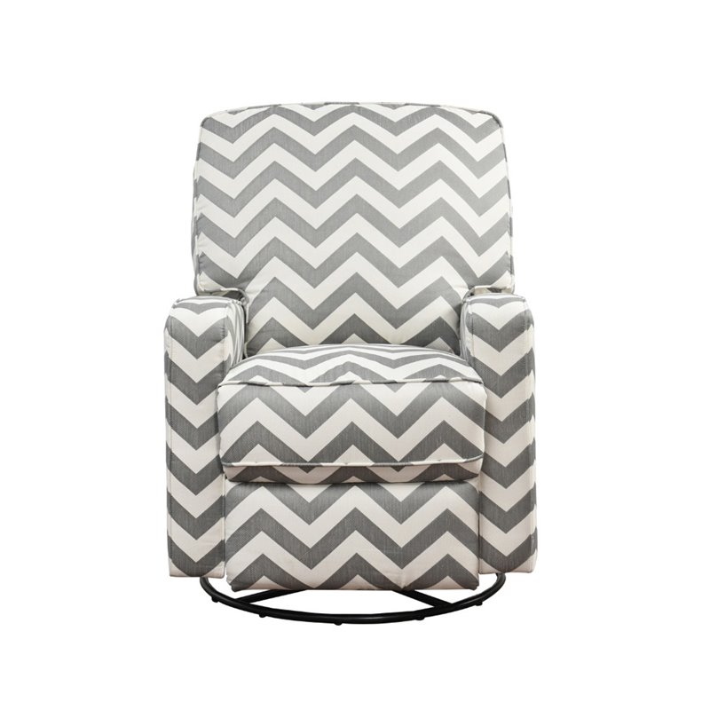 | Abbyson Living - Recliners - CR10406GRYCHEV - Complete your living room or nursery with this beautiful swivel glider, complete in a charming and easy-to-clean Gray and white chevron upholstery. Perfect for gently rocking your infant to sleep, this gorgeous glider features two additional easy reclining positions and cozy padding throughout to help you find ideal comfort. Finish: GrayMaterials: Hardwood Frame2 Reclining PositionsEasy to use heavy duty recliner mechanism2.0 high-density foam cushioningFully padded recliner leg supportGenerously padded arms, back, and seatSinuous spring suspension in backsBack can be easily removedHardwood frame reinforced with dowels, screws, and corner blocksSpecifications:Overall Product Dimensions: 39 H x 30 W x 38 DProduct Weight: 90 lbs